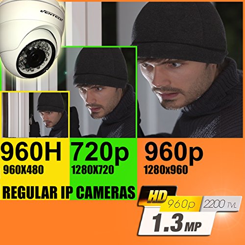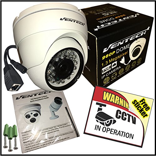 Ventech 1.3 Megapixel 960P HD Dome Outdoor Security Poe IP Camera, High Resolution, 20 Meters Night Vision, Supports Easy Remote View by Iphone, Andriod Phone, Pad and Windows PC