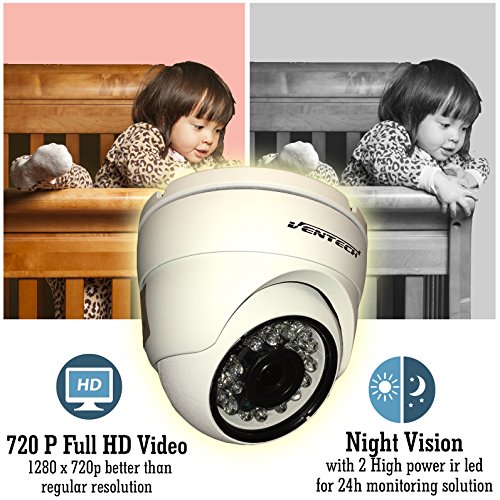 ➥ 1280*960 HD: Superior Full HD 1.3 Megapixel Video Resolution, 3.6MM fixed lens ● NIGHT VISION: 24 Pcs Big IR LED lights offer you with 60feet night vision distance ● Please don't worry about dark night ● Outdoor ϟ☁☂/Indoor