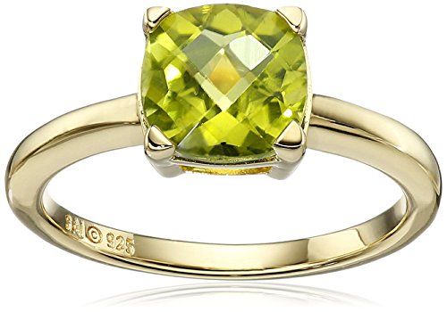 -. Title : Yellow Gold-Plated Sterling Silver Peridot Cushion Ring, Size 7