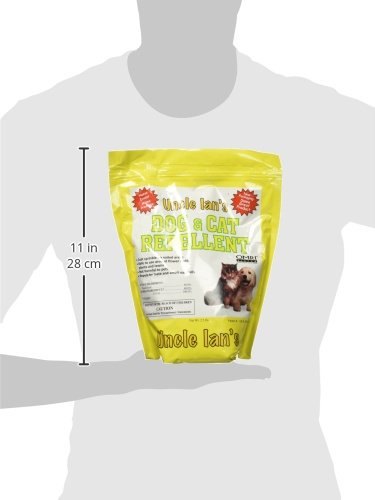 -. Binding : Lawn & Patio -. Brand : Ian EnterP.R.Ises -. EAN : 0832585001260 -. Feature : Just spread it around the yard where you want to keep dogs and cats out / It works by taste and smell and is not toxic to birds or wildlife / This product is made in United States -. Label : Uncle Ian's -. Manufacturer : Uncle Ian's -. Model : 100045830 -. MPN : 00126 -. PackageQuantity : 1 -. PartNumber : 00126 -. ProductGroup : Lawn & Patio -. ProductTypeName : OUTDOOR_LIVING -. Publisher : Uncle Ian's -. Size : 2.3 lb -. Studio : Uncle Ian's -. Title : Uncle Ian's Organic Dog and Cat Repellent, 2.3 lb -. UPC : 832585001260
