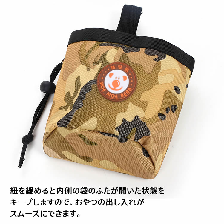 紐を緩めると内側の袋のふたが開いた状態をキープしますので、おやつの出し入れがスムーズにできます。
