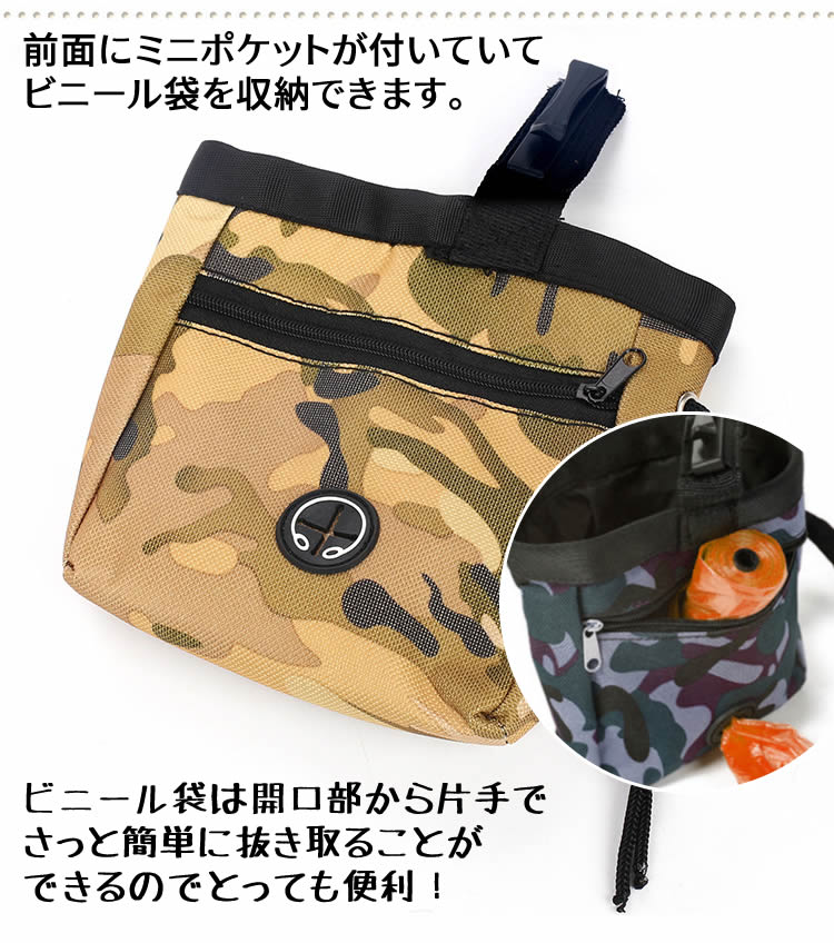 前面にミニポケットが付いていてビニール袋を収納できます。