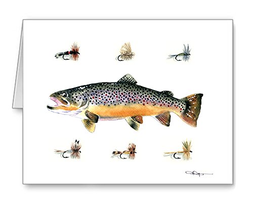 -. Feature : Brown Trout artwork by watercolor artist DJ Rogers. / Note card size is 4.25 x 5.5 inches / Matching white envelopes included. / Note cards are blank inside for your personal message. / Suitable for framing.