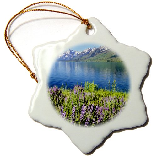 3dRose orn_97537_1 Wyoming, Grand Teton Np, Jackson Lake, Lupine-Us51 Rer0011-Ric Ergenbright-Snowflake Ornament, 3-Inch, Porcelain
