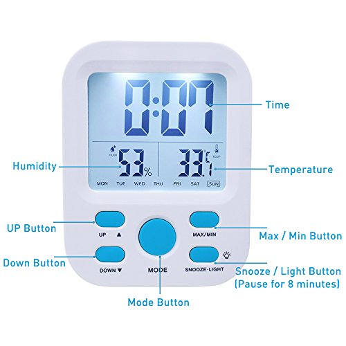 ✔ MULTIPLE FEATURES: Shows time, week, temperature, and humidity. You can set the time display to a 12- or 24-hour clock, and the snooze button is always handy and easy to find.