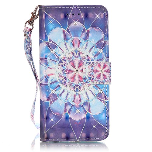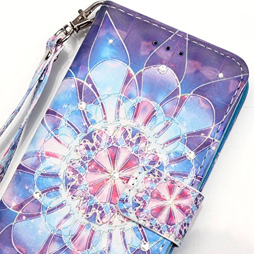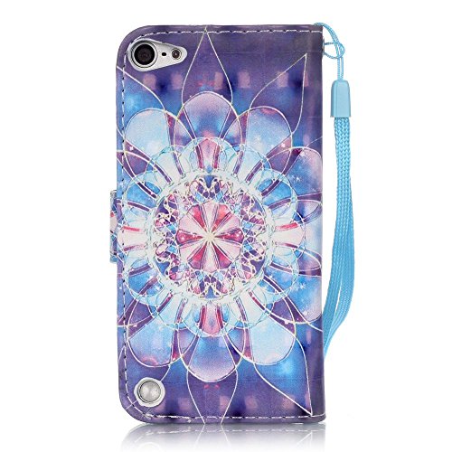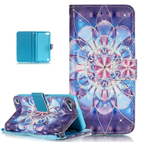 iPod Touch 6 Case,iPod Touch 5 Case,ikasus Shiny Glitter Diamond Colorful Art Painting PU Leather Flip Wallet Pouch Stand Credit Card ID Holders Case Cover for Apple iPod Touch 5/6,Blue Diamond Flower