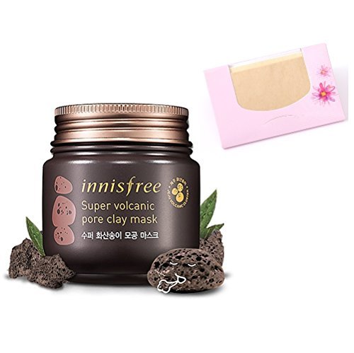 Innisfree Super Volcanic Pore Clay Mask 3.38 Oz/100Ml + SoltreeBundle Natural Hemp Paper 50pcs