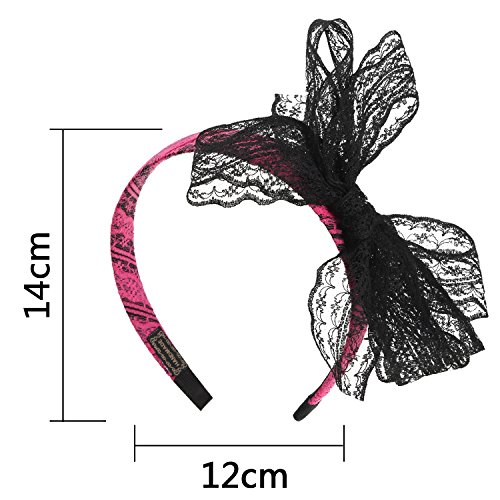 2 Pieces 80's party lace bow headband hair band 80s costumes for women, 2 color 2 Pieces lace headbands: Features a wide lace plastic headband with a matching black lace bow at the top, comes with 2 colors to choose, you are able to match it with other accessories. Good for 80s costumes: The headband part is made out of hard plastic covered with lace and with a lace bow attached, comfortable to wear, and easy to play dress up; These bow headband is good for an 80's dance party. Specifications: Quantity: 2 pieces Color: pink, black Material: plastic and fabric Bow size: approx. 18 x 13 cm/ 7 x 5 inch Hair hoop internal size: approx. 14 x 12 cm/ 5.5 x 4.7 inch Package includes: 1 x Black lace headband with black bow 1 x Pink lace headband with black bow 0