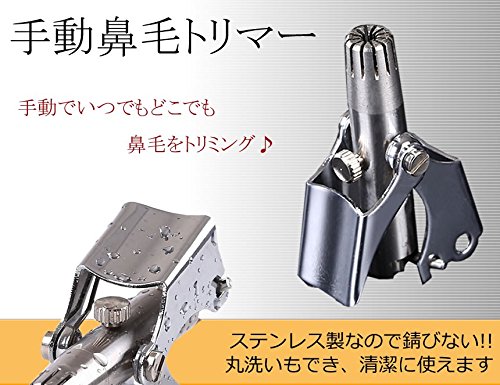-. Feature : 手動でいつでもどこでも鼻毛をトリミング♪ / ステンレス製なので錆びない!! / 丸洗いもでき、清潔に使えます / 指摘されて、テンションが下がる / その前に対策をうちましょう!!