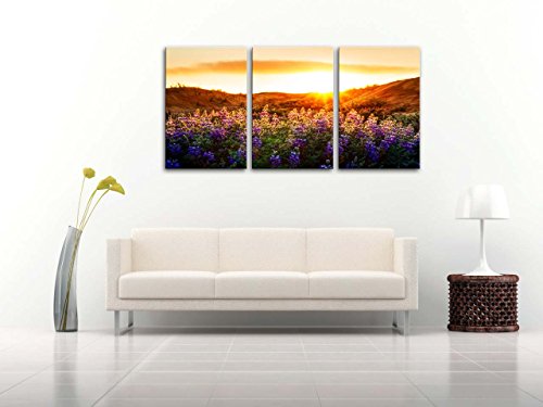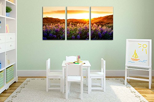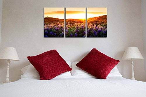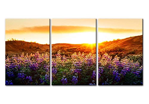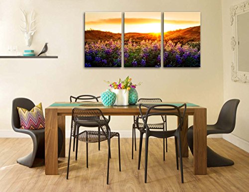 -. Title : Canvas Print Wall Art Painting For Home Decor Floral Landscape Of Purple Provence Lavender Field With Sunrise Sunshine 3 Pieces Panel Paintings Modern Giclee Stretched And Framed Artwork The Picture For Living Room Decoration Flower Pictures Photo Prints On Canvas
