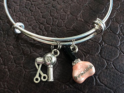 -. Title : Manicurist Charm Bangle Scissors and Blow Dryer on a Silver Expandable Bracelet