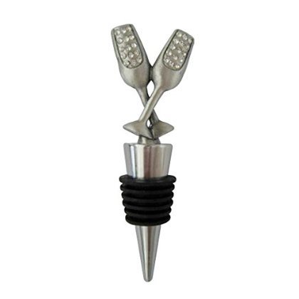 Beautiful pewter finished toasting glasses wine bottle stopper to commemorate your next celebration will fit any size wine bottle or champagne bottle.