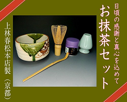 -. Feature : 京都上林春松本店(創業450年、宇治の老舗茶舗)のお抹茶付きでございます。・オリジナル『簡単な抹茶の点て方』写真入り説明書付き。・茶道とは縁のなかったお客様からも本格的な京都の宇治抹茶「上林春松本店製」を手軽にお楽しみいただけるとご好評をいただいております。抹茶は茶を丸ごと飲むためカテキンや食物繊維が多く含まれています。 / 宇治抹茶。1.抹茶茶碗(日本製・美濃焼)。2.茶杓。3.茶筅(中国製)。4.茶筅直し(日本製)※茶筅直しは抹茶碗と共に同梱されています。5.京都宇治抹茶20g上林春松本店製。【抹茶碗の寸法】径:約12cm。高さ:約7.5cm。標準的な大きさです。 / 陶器は、もともと自然原料である陶器用粘土を主体に使いますので、鉄分がは多く含まれています。陶器商品につきましては鉄の成分が器の表面に黒子や灰釉として表れることもございます。また焼き物のため一つ一つ景色(釉薬のかかり具合い)は 異なり ます。ご了承ください。宇治茶。お抹茶セット5点。 / 外国人のお客様や友人への贈り物としてご好評をいただております。※茶筅直しは抹茶碗と共に同梱されています。 / 京都上林春松本店。十三世紀の初頭、栂尾高山寺(現・京都市右京区)の僧明恵高弁によって開かれた宇治の茶園。その歴史を支えてきたのが、恵まれた自然条件、茶にかける茶師たちの情熱、そして将軍家の支援でした。 上林家は、十四世紀後半、足利三代将軍義満公が宇治七茗園と呼ばれる茶園を開き、宇治茶の名声を天下に広めた頃から将軍家の手厚い庇護を受け、有力茶師である「御茶師」として栄えました。 しかし十六世紀後半、織田信長との戦により室町幕府は滅亡。将軍家と深く関わっていた宇治茶業界も、大きなダメージを受けます。 その後、お茶を好み茶道を民衆に広めた豊臣秀吉が宇治の復興に力を注いだことによって、宇治茶業界も新たな時代に突入。豊太閤の期待に応えるため努力を続けた初代上林春松軒は、宇治橋の西一丁(現在の宇治・上林記念館)に居を構えます。 そして徳川の世、茶道はますます盛んになり、将軍家康は上林家に宇治代官、茶頭取を任命。上林家は、宇治茶の総支配を仰せつかわるまでに至るのです。 「上林春松本店ホームページ」より