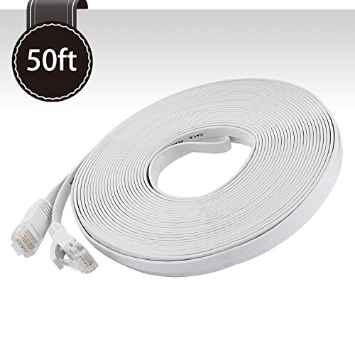 Cat 6 Ethernet Cable White 50ft (At a Cat5e Price but Higher Bandwidth) - Flat Internet Network Cable - Cat6 Ethernet Patch Cable Short - Cat6 Computer Cable With Snagless RJ45 Connectors