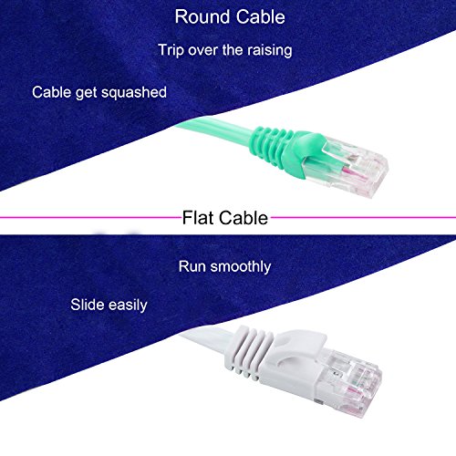 ✔Flat Cat 6 cable design helps avoid tangled cords and saves space.Flat Ethernet cable is super flexible when run under the carpet or bent in the plane of its thin cross-section such as doors, rotating arms, drawers etc