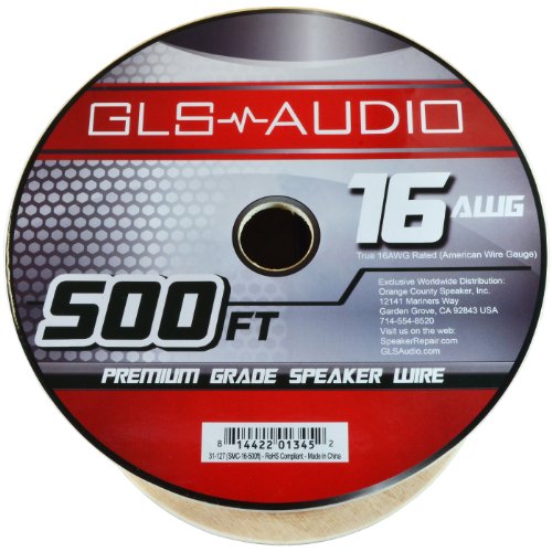 GLS Audio Premium 16 Gauge 500 Feet Speaker Wire - True 16AWG Speaker Cable 500ft Clear Jacket - High Quality 500' Spool Roll 16G 16/2 Bulk