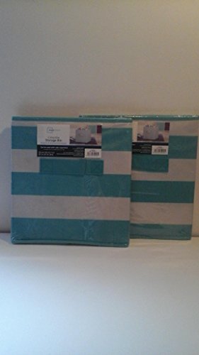 2 Teal Stripe Mainstays Collapsible storage bins 10.5 in W x 10.5 in D x 11 in H