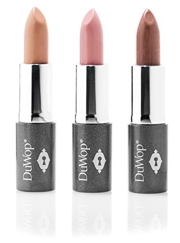-. Feature : SET OF THREE LIPSTICKS: Travel-size collection of P.R.Ivate Red, P.R.Ivate Plum and P.R.Ivate Nude / ADJUSTS TO YOUR SKIN: Mood lipstick technology adjusts to your individual coloring, giving you the perfect shade every time / CONDITIONS AND HYDRATES THE LIPS: Beeswax, castor oil and Vitamin E keep the lip color lightweight and emollient / DOUBLES AS A BLUSH: Apply just behind the apple and blend, to match the lips. / VEGAN AND CRUELTY-FREE: DuWop Cosmetics products are never tested on animals