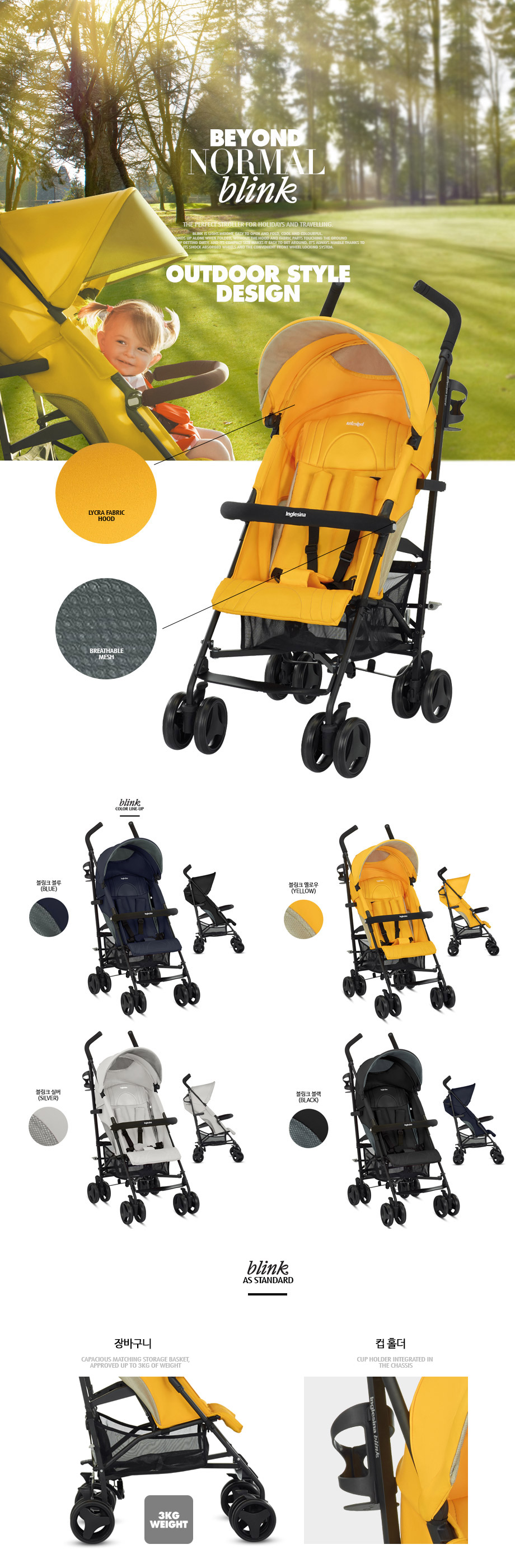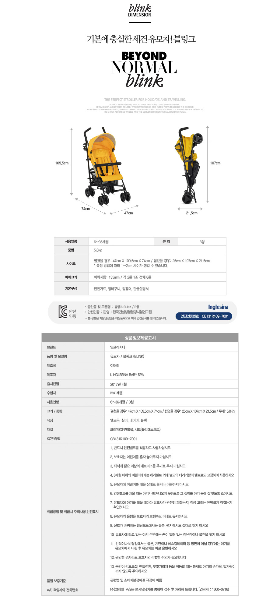 Age: 6 to 36 months Weight: 5.8kg Size: When expanded: 47 * 109.5 * 74 cm When folded: 25 * 107 * 21.5cm * 1 ~ 2cm difference may occur depending on the measurement method. Wheel size: Wheels diameter: 135mm / 8 wheels for each pair of two wheels Basic configuration: Safety guard, cart, cup holder, manual Country of origin: Italy Color: Yellow, Silver, Navy, Black Material: Frame (aluminum) / sheet (polyester) ![]() |