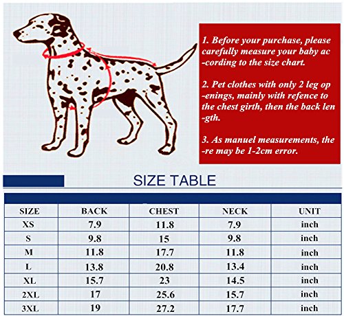 3. Pets' clothes with 4 legs, you need to consider both the size of the bust and back length.