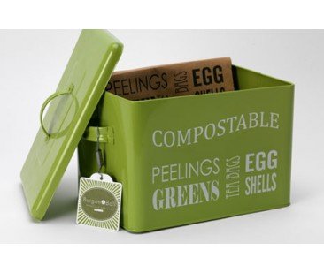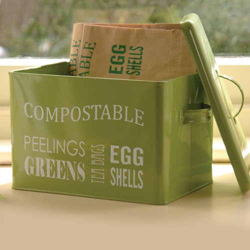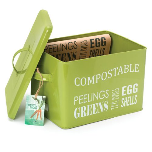 At last a bin that doesn't have to be hidden under the sink. This trendy color will fit right into your decor while being eco-friendly and functional. Powder-coated steel. Comes with 2 compostable kitchen compost bin liners. Additional liners sold separately. Measures 8.5-inches deep by 11.5-inches long by 8-inches high. 0