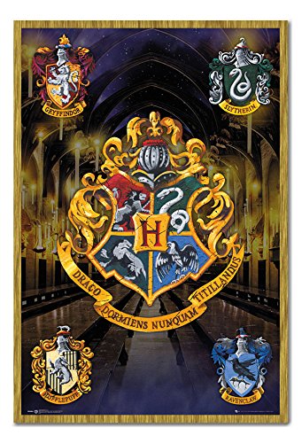 -. Title : Harry Potter Crests Poster Magnetic Notice Board Oak Framed - 96.5 x 66 cms (Approx 38 x 26 inches)