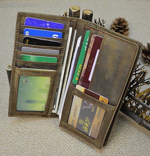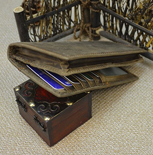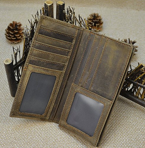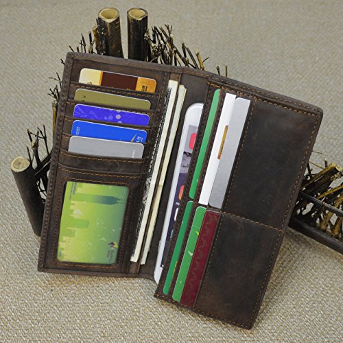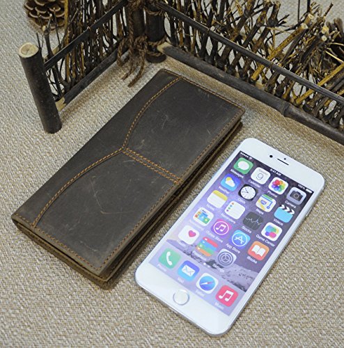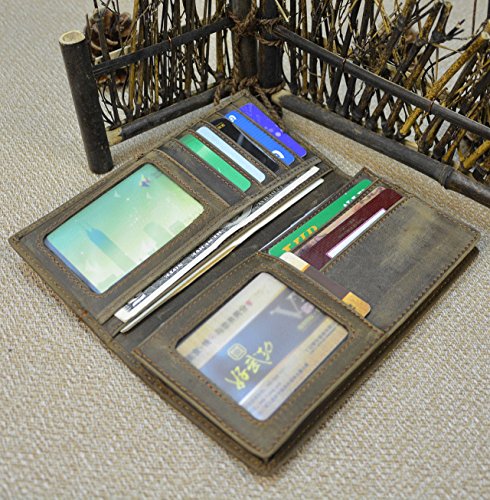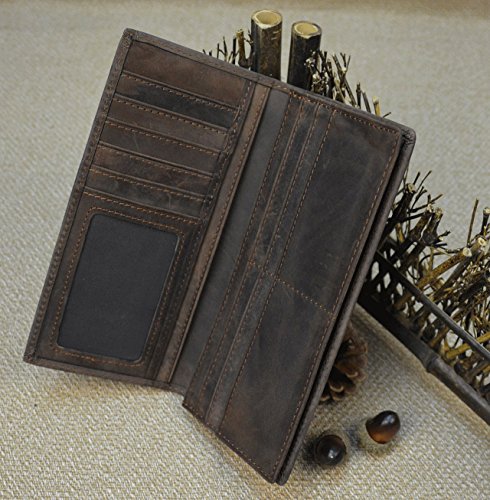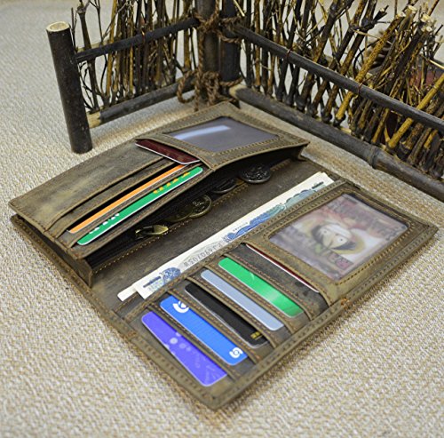 -. Title : Men's Genuine Leather Long Wallet Vintage Cow Leather Bifold Chain Card Holder Clutch