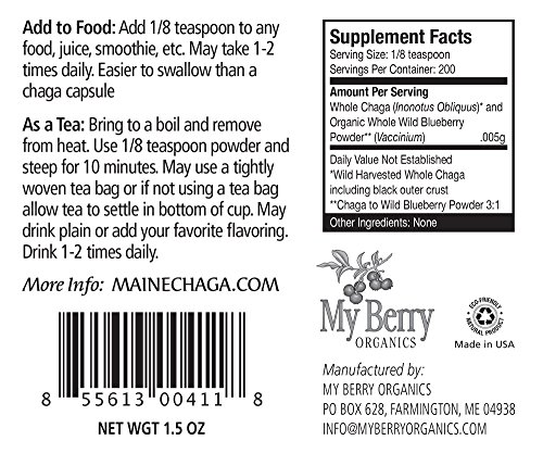 - Wild Harvested Chaga Mushroom & Organic Whole Wild Blueberry Powder