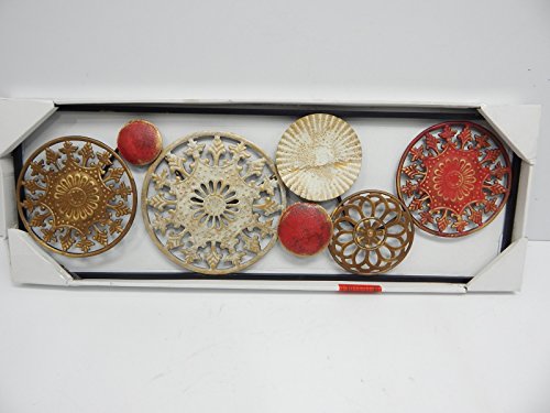 New All American Collection Modern Chic Aluminum/ Metal Wall Decor with Frame 12"x36" (Red/Gold/White Crown)