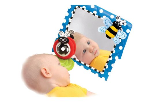 Studio : Sassy Publisher : Sassy Binding : Baby Product Product Description The Sassy Floor Mirror inspires baby's vision, touch, exploration, communication and manipulation skills with high contrast colors, character faces, simple patterns and realistic forms. Includes high contrast tracker ball for visual stimulation and perception. Textures and fun characters of ladybug and bee keep baby's attention. Textured leaves offer fun peek-a-boo play. Easel back allows mirror to be used on floor. 0