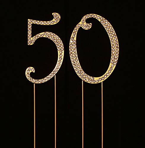 - MULTIPLE USES AND A KEEPSAKE: Use this as a cake topper for 50th birthday or anniversary, a centerpiece, part of a floral arrangement or place setting. Remove the metal prongs after the party and save this as a keepsake. This is a must have bling cake topper for your birthday or anniversary party decoration.