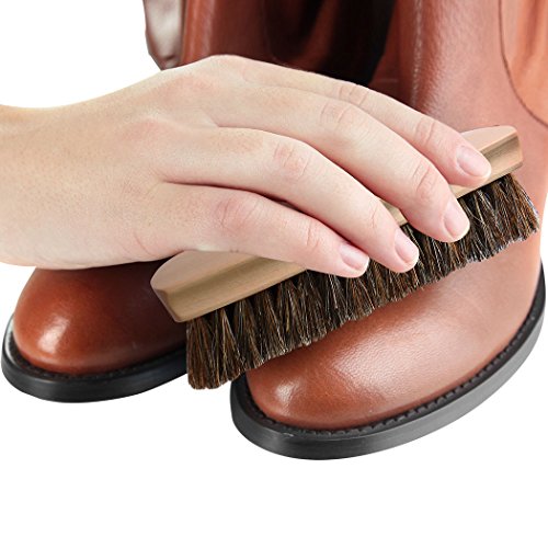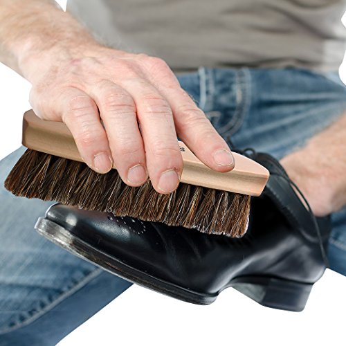 Product Description Professional Genuine 100% Horsehair bristles and easy grip rocker style hardwood handle make it easy to shine your shoes anytime and anywhere. Professional large shine brush with 6.75" x 2.25" handle with 1.25" bristles. One brush does it all, shine, buff, clean and polish your leather or vinyl shoes, boots, gloves, jacket / coat, furniture, car auto upholstery, purse, wallet, hat, belt and more. Use after applying polish to boots and shoes or other accessories. Brush to a high shine to make your leather and vinyl products looking new as the day you bought them. Keep it handy to buff up the shine on the go. Ideal for farm, ranch, home, car and cottage. 100% Manufacturer Money Back Satisfaction Guarantee. 0
