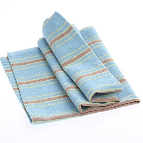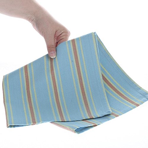 - Collection of 12 Square Sky Blue with Spring Green and Terra Cotta Stripe Cafe Cloth Napkins for Dinner Parties, Decorating and Everyday Use