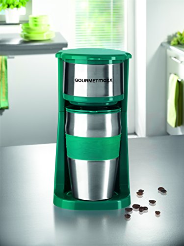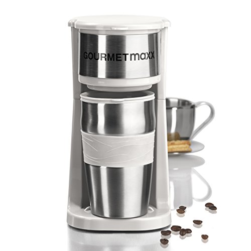 Kaffeegenuss auf die moderne Art: schnell, easy & flexibel! Genießen Sie jetzt jederzeit einen Becher frisch gebrühten Kaffee, ganz unkompliziert und im Nu zubereitet! Die kompakte "GOURMETmaxx" Single-Kaffeemaschine Edelstahl zaubert genauso schmackhaften Kaffee wie die "Großen" und benötigt nur minimalen Platz - ideal auch für kleine Haushalte! Einfach den Permanentfilter mit gemahlenem Kaffee befüllen, einschalten und los geht´s! Sogar unterwegs können Sie Ihren Kaffee aus dem Thermobecher mit "To-go-Deckel" genießen. Freuen Sie sich auf aromatischen Kaffee, Tasse für Tasse frisch zubereitet! Mit automatischer Abschaltfunktion. Technische Daten: - Material: PP, Edelstahl - Maße (L x B x H): ca. 16,7 x 13,0 x 24,5 cm - Leistung: 220 - 240 V, 50 /60 Hz, 650 -750 W - Hinweise: Kompakter Wassertank (ca. 420 ml)Feature