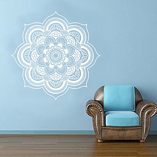 -. Title : Wall Decal Decor Yoga Flower Mehndi Indian Mandala OM Buddha Symbol Wall Decal Buddhism Decor Art Sticker VInyl Mural(44"h x44"w, white)