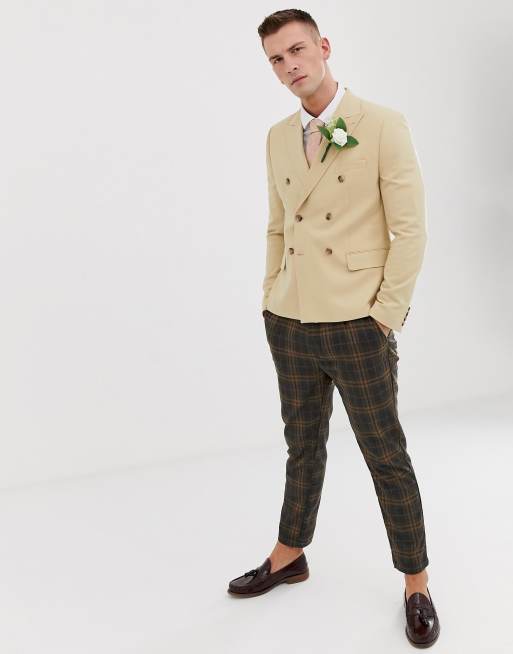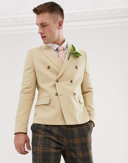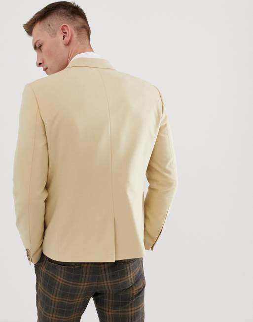 ASOS DESIGN slim crop blazer in beige
