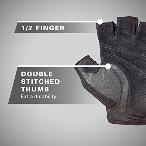 The Men's Power Gloves from Harbinger are designed to protect the hands from blistering during intense weight lifting without sacrificing comfort and feel. The gloves feature StretchBack performance mesh on back of the hands and between the fingers for increased flexibility. The half-finger length design offers increased contact with the grip. The gloves feature leather palm construction that protects the hands while maintaining a strong feel on bar. Open cell foam cushions the palms and fingers and is resilient for long term use. Additional features include enhanced thumb protection, double stitched construction for enhanced durability, and fully adjustable wrist closures.