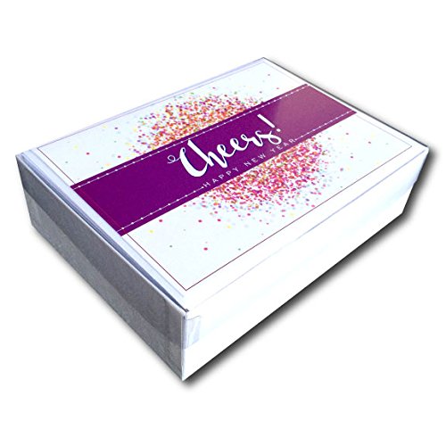This boxed set contains 25 greeting cards and 26 white envelopes with gold foil lining. They are contained within a rigid stationery box for protection and storage.