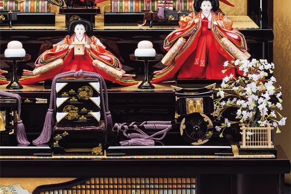 親御様、お子様、縁者様の健康と発展を願いながら職人が丁寧に仕上げた雛人形飾り/雛人形が初節句のお祝いにはなを添えます。