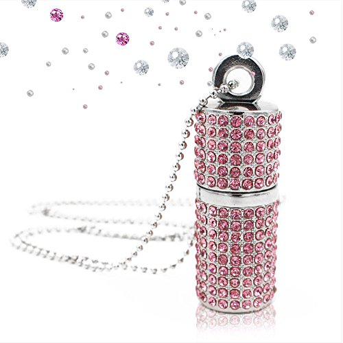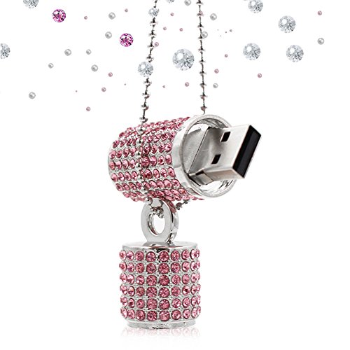 Techkey USB Flash Drive,Bling Rhinestone Diamond Crystal Glitter Lipstick Case Shining Jewelry Necklace,16GB,Sakura Pink