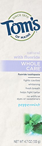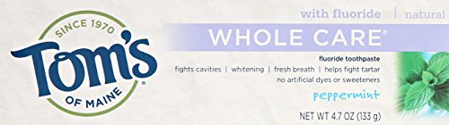 Tom's of Maine Whole Care with Fluoride Natural Toothpaste, Peppermint 4.7 oz (Pack of 2)