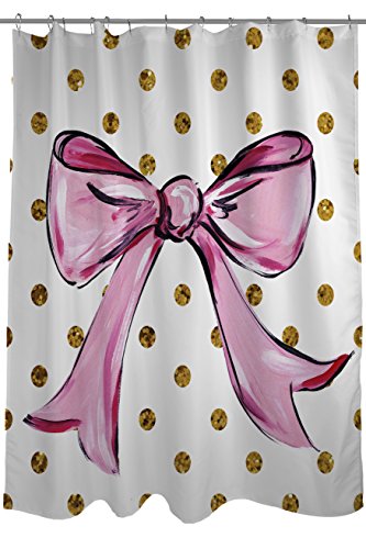 One Bella Casa Pink Bow Dots/Bows Shower Curtain by Timree Gold, Standard 71"x 77"