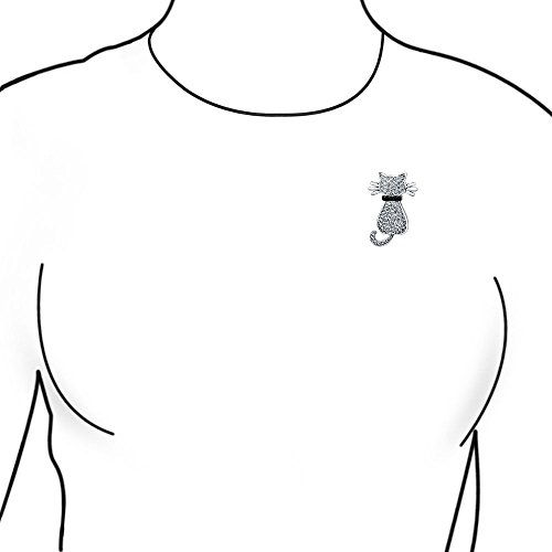 -. Feature : Back of a Sitting Cat Brooch / Stone: 1.6 mm / Material: Cz, Rhodium Plating, Brass / Measure: 1.4 inch L x 0.65 inch W / Weight: 6.4 grams