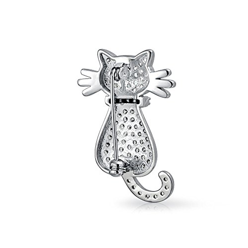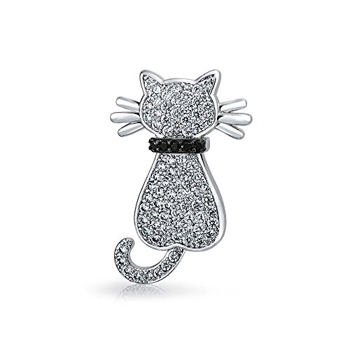 -. Title : Bling Jewelry White Pave CZ Cat Animal Brooch Pin Rhodium Plated