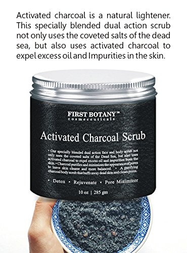AMAZING INGREDIENTS: This specially blended dual action scrub not only uses the coveted salts of the dead sea, but also uses activated charcoal to expel excess oil and Impurities in the skin. Even though this amazing scrub is black, we can assure you that it is giving your skin a cleanse like never before. Detoxify and rejuvenate your skin with this exfoliating scrub that not only uncovers fresh skin but also leaves moisturizing minerals and nutrients behind.