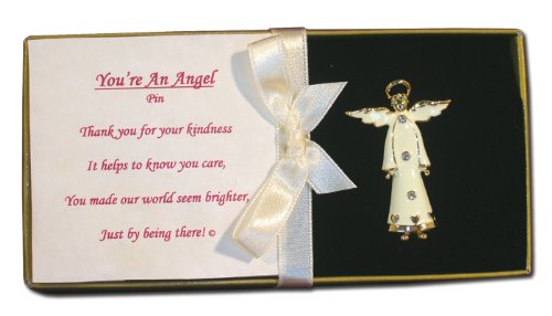 -. Feature : ENAMELED angel accented with sparkling gem crystals jeweled accents / IDEAL gift for Mom, Grandma, Sister or Friend on their Birthday, Christmas / BOX message: You're An Angel Pin - Thank you for your kindness It helps to know you care, You made our world seem brighter, Just by being there! / ANGEL with halo and wings with gold trim. / MEASURES: 1.75"H x 1.25"W