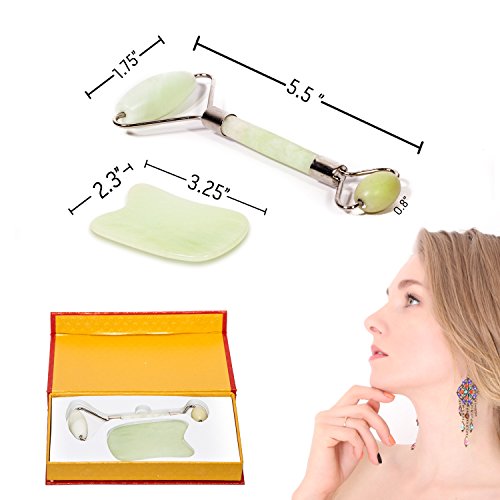 -. Feature : EXCELLENT ANTI-AGING SKIN TREATMENT: Give your skin a beautiful youthful look with our jade stone gua sha roller. The smooth surface of the stones is great for evening out and tightening your skin, effectively fighting wrinkles. It is also great for acne, and promotes microcirculation within the skin. / 100% NATURAL JADE: This jade roller is made from natural jade, and is therefore a perfectly safe wat to give your skin a beautiful sheen. It is full of natural minerals that tone your skin, making it look naturally beautiful with every treatment session. / PERFECT FOR RELAXING THE BODY: Our gua sha stones and jade face roller are not only meant to return your skin to a youthful state, but also deeply relax your body after a tiresome day. Massage your face and body using this jade roller set and enjoy the calming, rejuvenating effect. / CONVENIENT DOUBLE-SIDED ROLLER: The double-sided design of this jade roller is intended to make massage sessions easier and more convenient for you. It has a large and small stone, that let you easily reach every inch of your face, arms, back, and legs, for a deep relaxing massage. / MAKES FOR A PERFECT GIFT: If you are looking for a thoughtful gift to give to a loved one, this gua sha scrapper and massage tool set is just what you need. It shows how much you value them, and comes in a beautiful gift box, making it a practical gift for all occasions. Click 'Add to Cart' now!