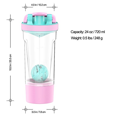 AVOIN colorlife 24 Ounce Protein Shaker Bottle with Mixball and 7 Ounce Storage Jar - BPA Free