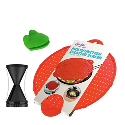 These 3 in splatter screen & animal pot holders are THE BOMB! Fun colors and styles to compliment your kitchen & your style. Inexpensive Stocking Stuffer.