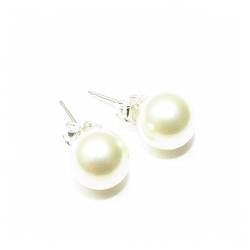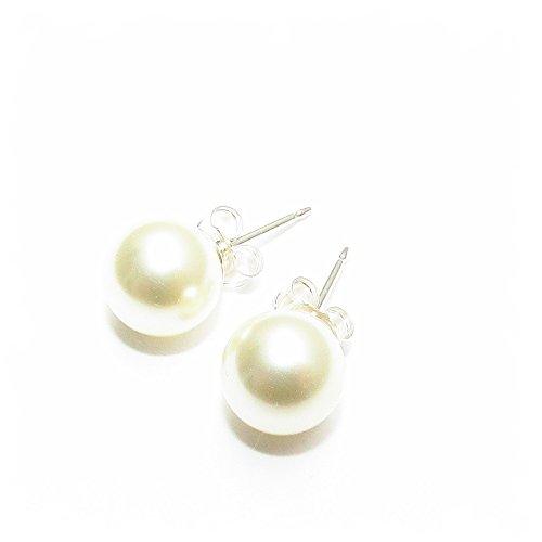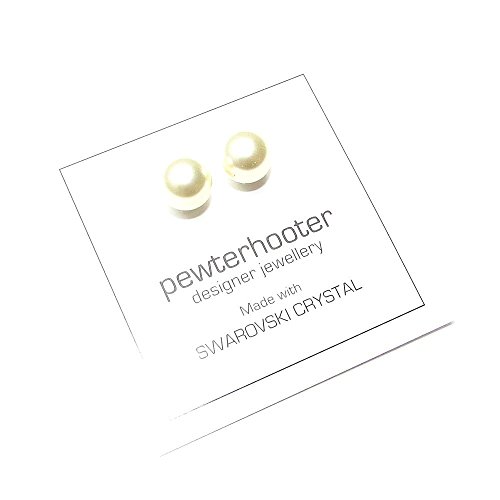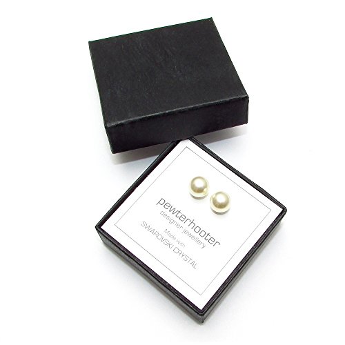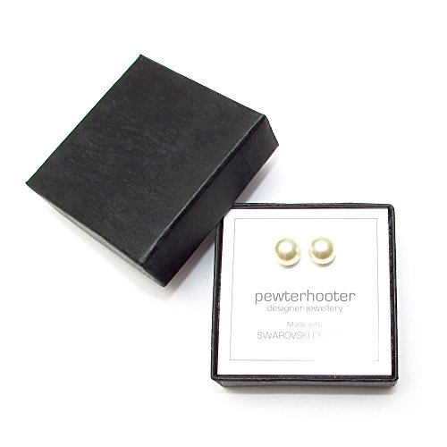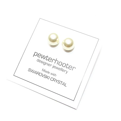 Pewterhooter pewterhooter 925 Sterling Silber Ohrstecker Ohrringe mit runden Cremefarbene Kristall Perlen aus SWAROVSKI.